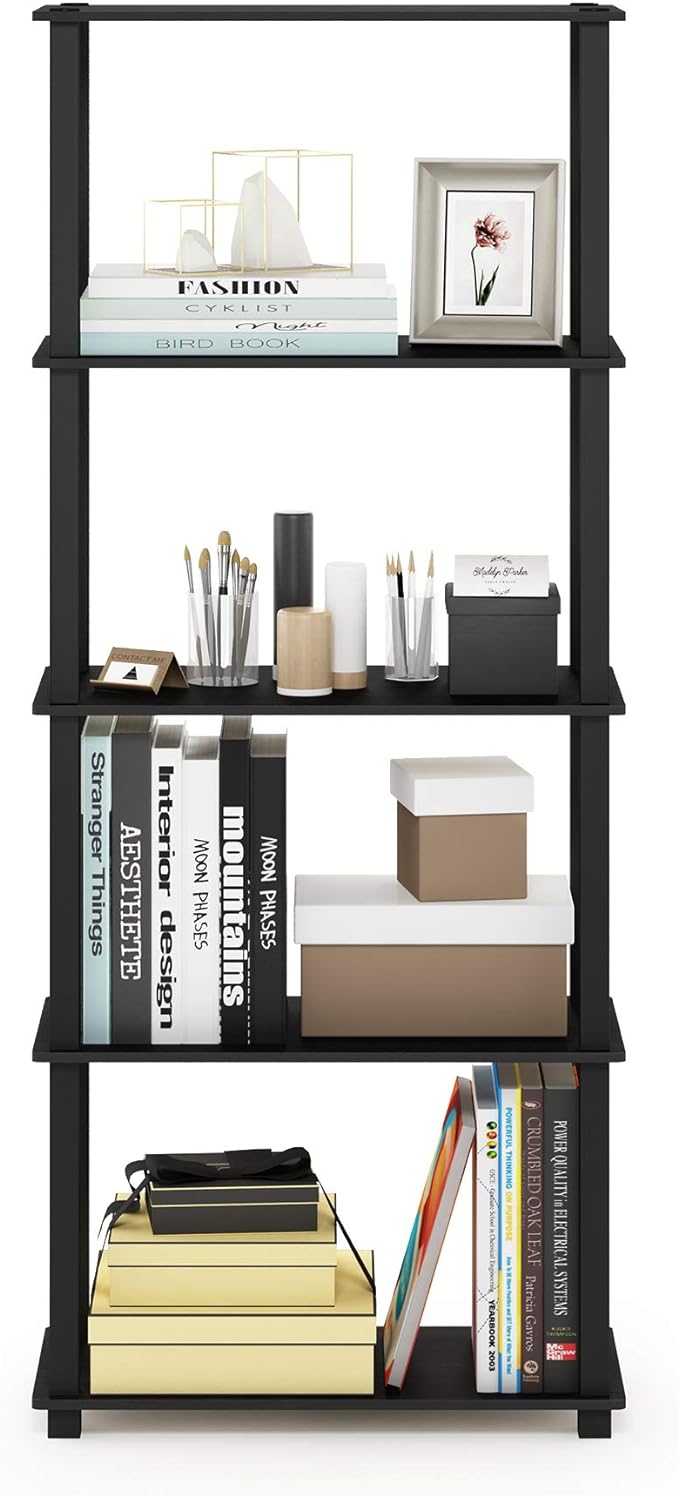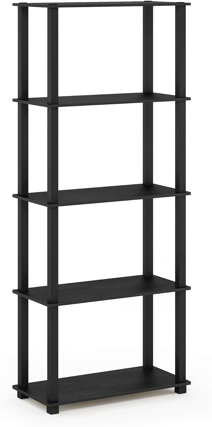 Furinno Turn-N-Tube 5-Tier Multipurpose Shelf / Display Rack / Storage Shelf / Bookshelf, Square Tubes, Americano/Black
