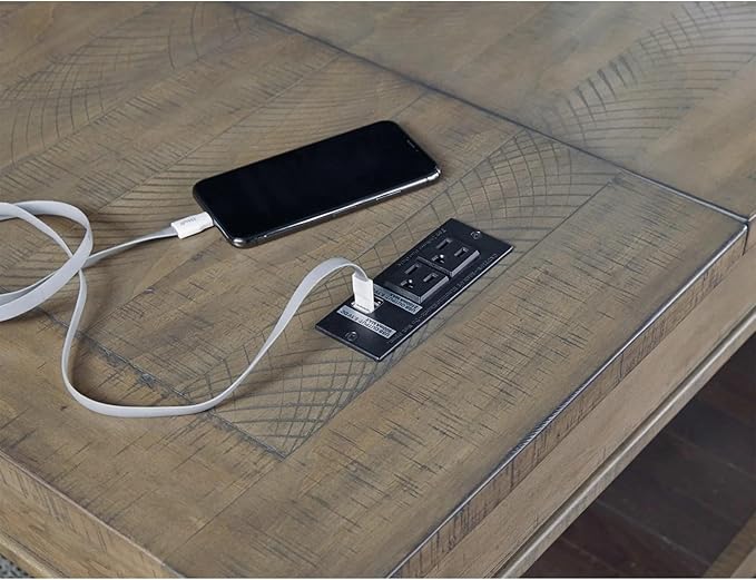 Signature Design by Ashley Aldwin Rustic Farmhouse 60" Home Office Lift Top Desk with Charging Ports, Distressed Gray