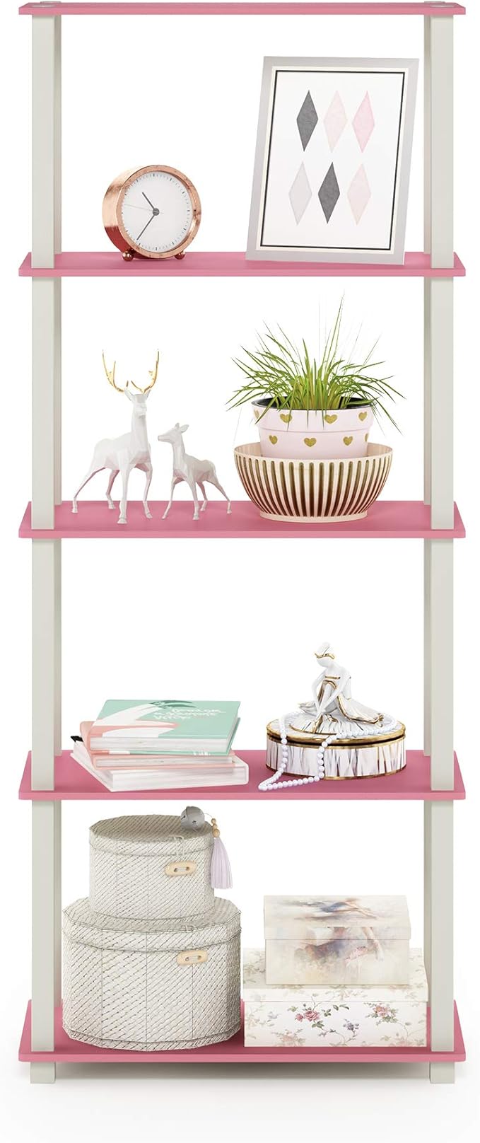 Furinno Turn-N-Tube 5-Tier Multipurpose Shelf / Display Rack / Storage Shelf / Bookshelf, Square Tubes, Pink/White