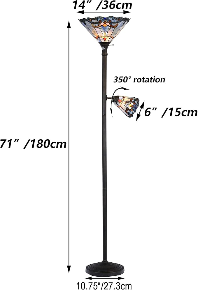 Bieye L10686 Baroque Tiffany Style Stained Glass Torchiere Floor Lamp with Sidelight for Reading Home Decor, 71-inch Tall