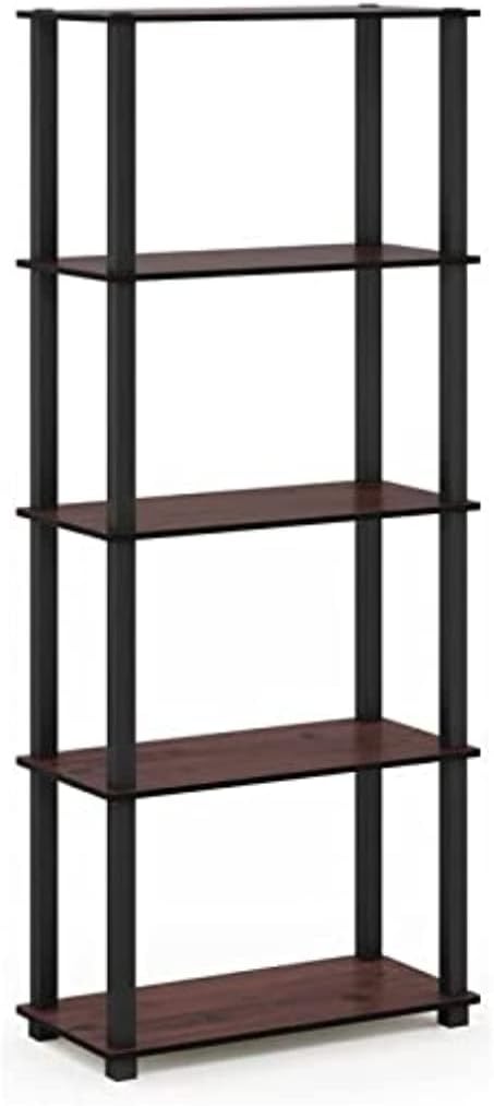 Furinno Turn-N-Tube 5-Tier Multipurpose Shelf / Display Rack / Storage Shelf / Bookshelf, Square Tubes, Dark Cherry/Black
