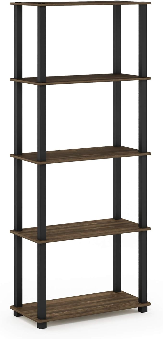 Furinno Turn-N-Tube 5-Tier Multipurpose Shelf / Display Rack / Storage Shelf / Bookshelf, Square Tubes, Columbia Walnut/Black