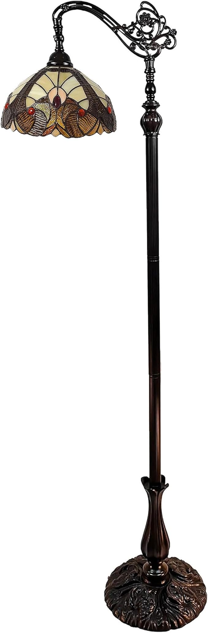 Amora Tiffany Style Floor Lamp Arched Vintage Antique 62" Tall Stained Glass Brown Red Tan Traditional Light Decor Bedroom Living Room Reading Gift AM344FL12 Lighting