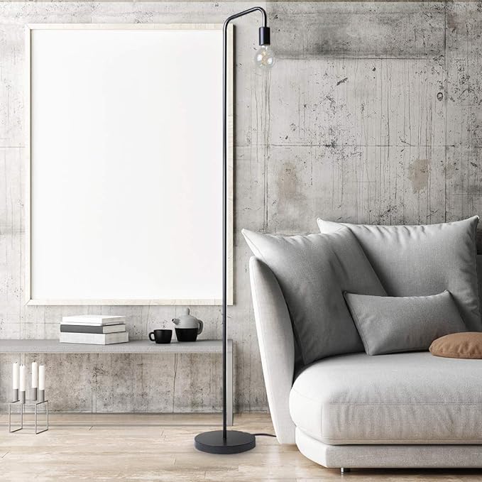 O’Bright Industrial Floor Lamp for Living Room, 100% Metal Lamp, UL Certified E26 Socket, Minimalist Design for Decorative Lighting, Stand Lamp for Bedroom/Office/Dorm, ETL Listed (Black)