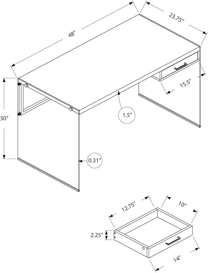 Monarch Specialties Computer Desk - Contemporary Writing Desk with Drawer - Tempered Glass Legs - 48"L (Grey Reclaimed Wood Look)