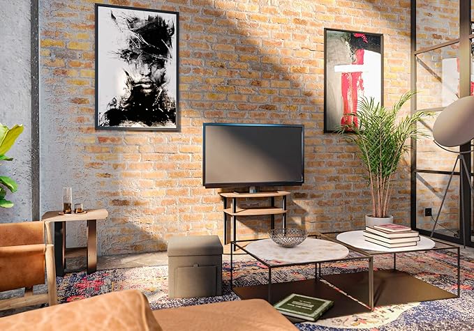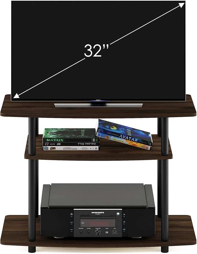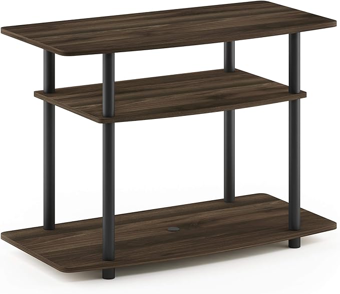 Furinno Turn-N-Tube No Tools 3-Tier Entertainment Center TV Stand for TV up to 32 Inch, Plastic Round Tubes, Columbia Walnut/Black