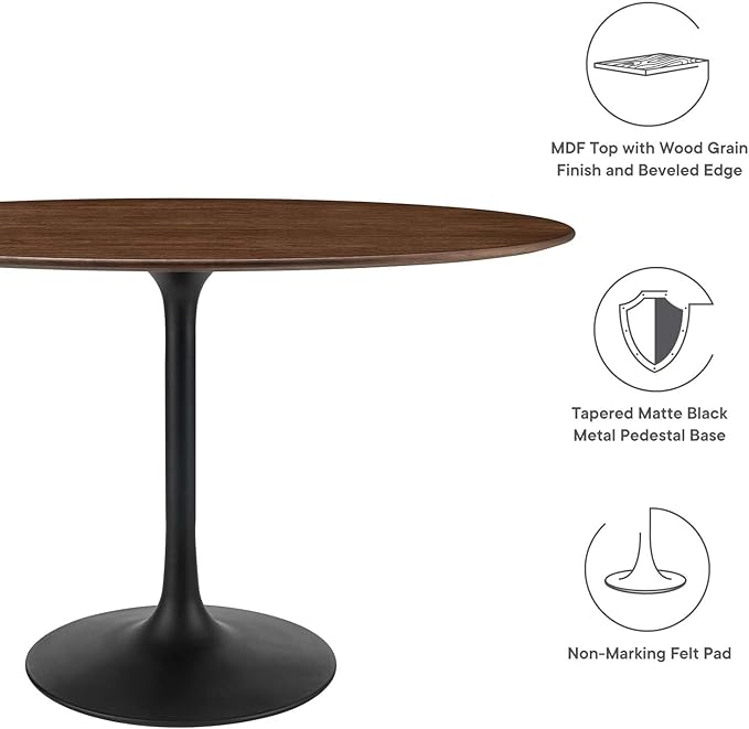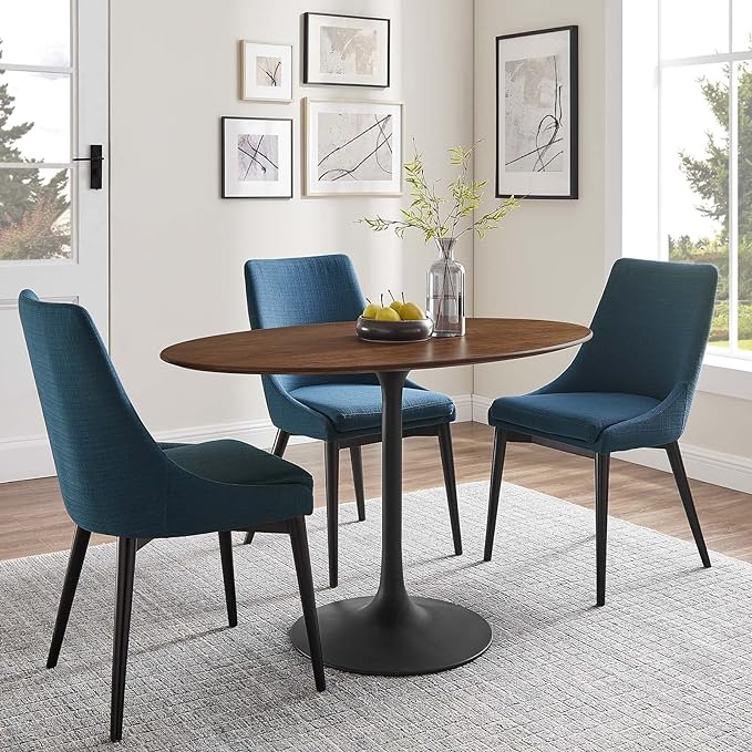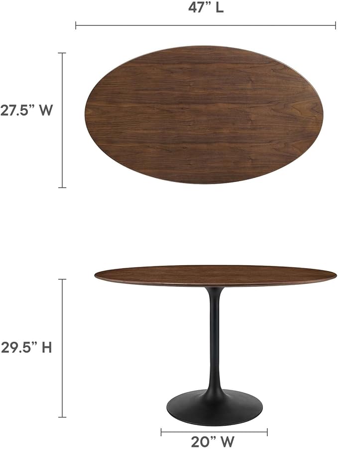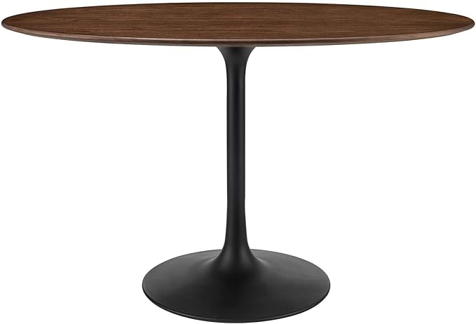 Modway Lippa 48" Oval-Shaped Mid-Century Modern Dining Table with Walnut Top and Black Base