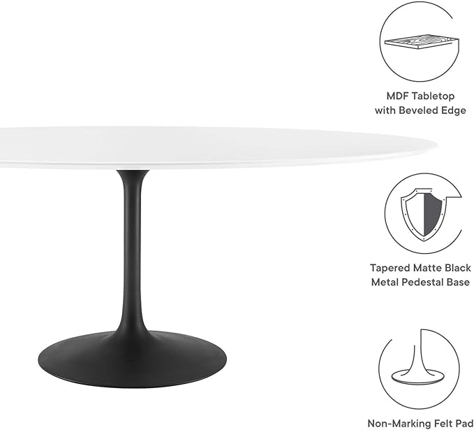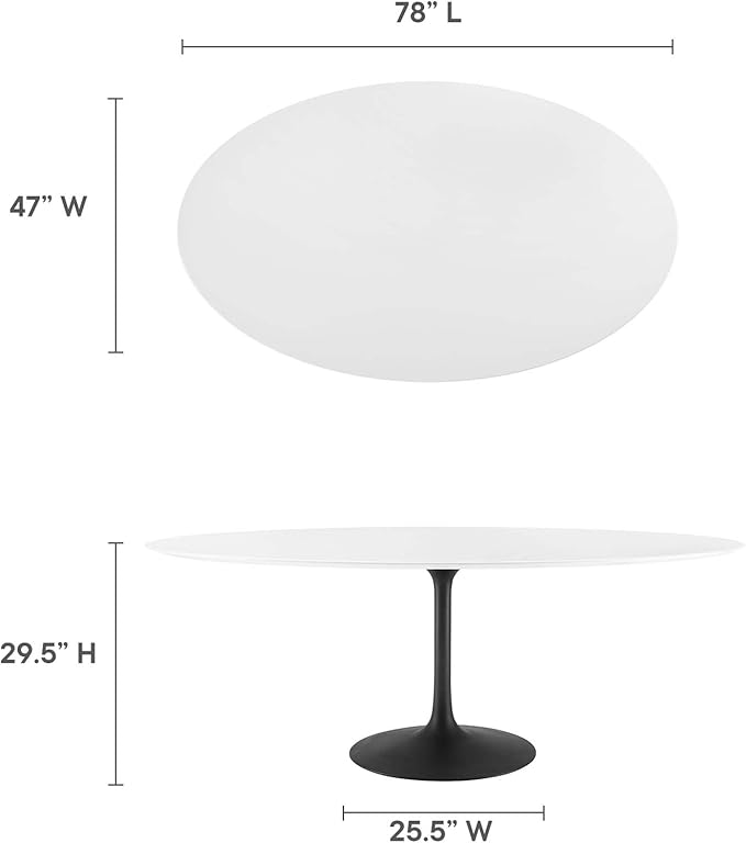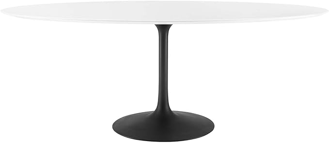 Modway Lippa 78" Oval-Shaped Mid-Century Modern Dining Table with White Wood Top and Black Base