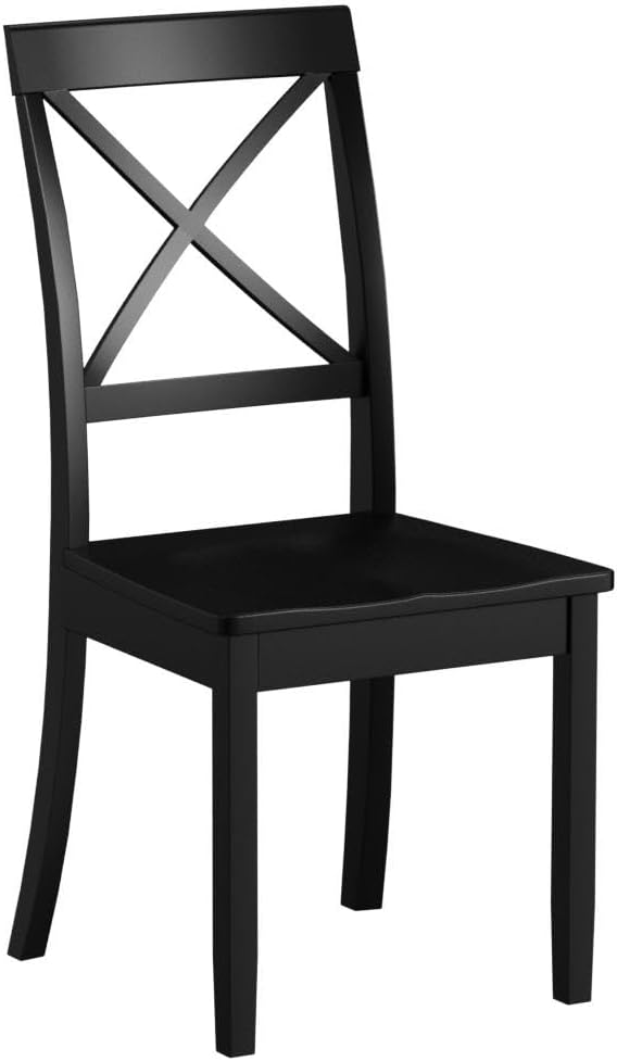 East West Furniture Boston Dining Room Cross Back Solid Wood Seat Chairs, Set of 2, Black