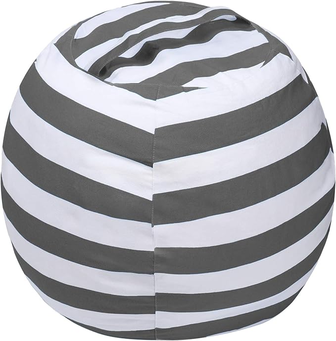 2 PCS Stuffed Animal Storage Bean Bag Chair Cover, Cotton Canvas Beanbag with Zipper for Organizing Kid's and Adults Room Grey 24"