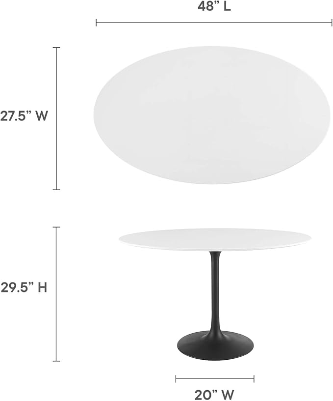 Modway Lippa 48" Oval-Shaped Mid-Century Modern Dining Table with White Wood Top and Black Base