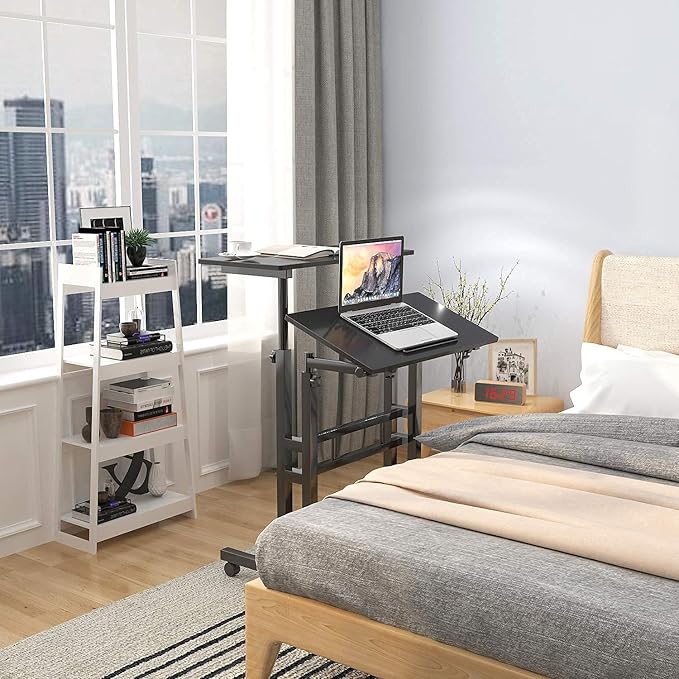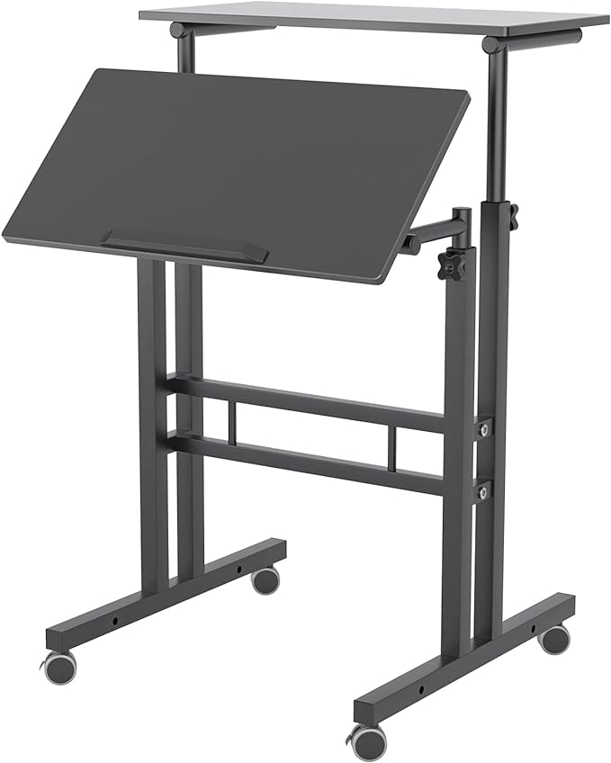 sogesfurniture Mobile Standing Desk Laptop Workstation on Wheels, Adjustable Computer Desk for Standing or Sitting, Black 101-BK
