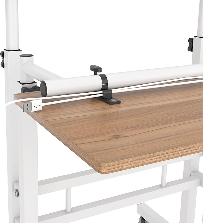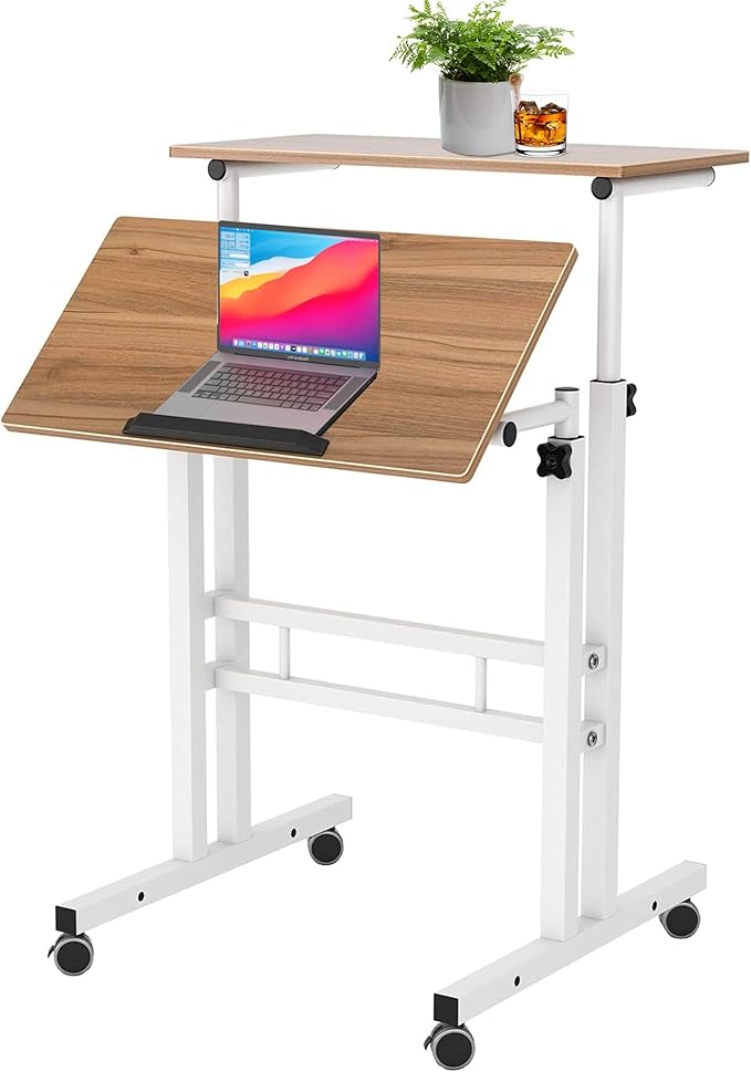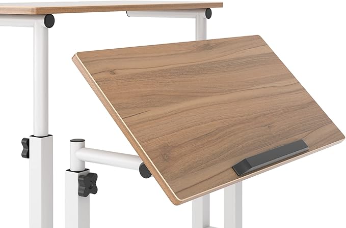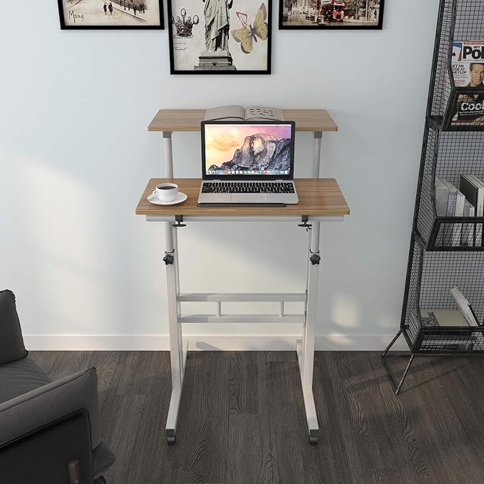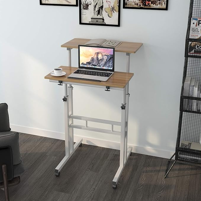 sogesfurniture Mobile Standing Desk Laptop Workstation on Wheels, Adjustable Computer Desk for Standing or Sitting, Oak 101-OK