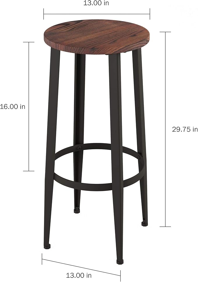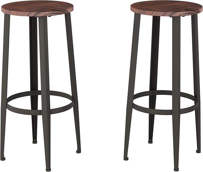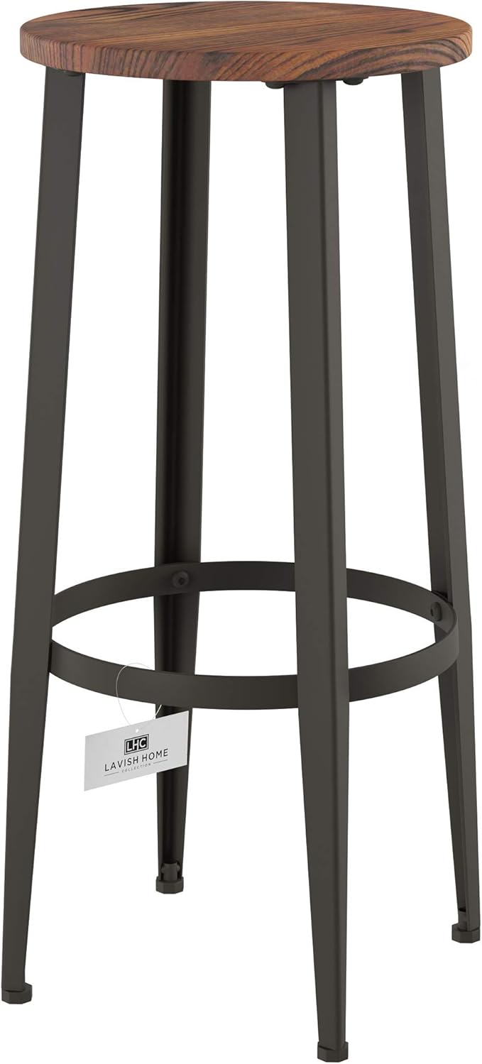 Home Lavish Bar Height Stools-Backless Kitchen or Dining Room Metal Base, Wood Seat- Modern Farmhouse Accent Furniture (Set of 2)