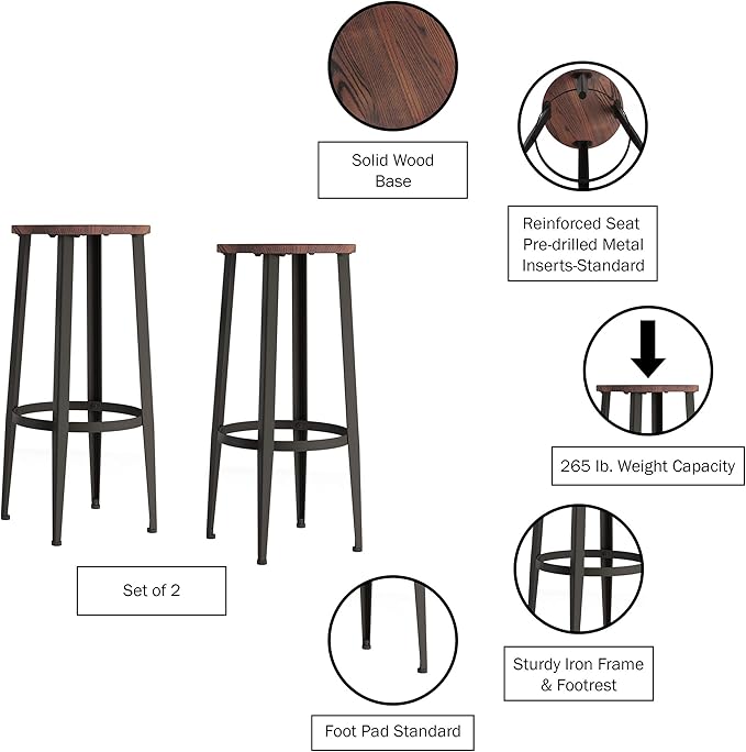 About This 2 Pack barstools- the bar height stools conveniently come in a Set of 2, and will make a...