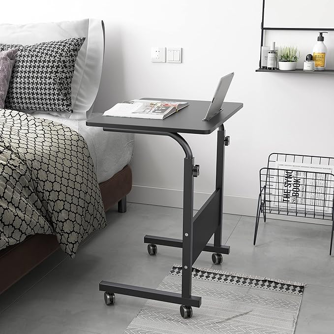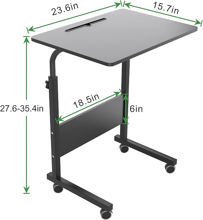 SogesHome 23.6'' Portable Computer Desk - Adjustable Standing Desk with Tablet Slot, Laptop Cart, and Mobile Bed Table, Black