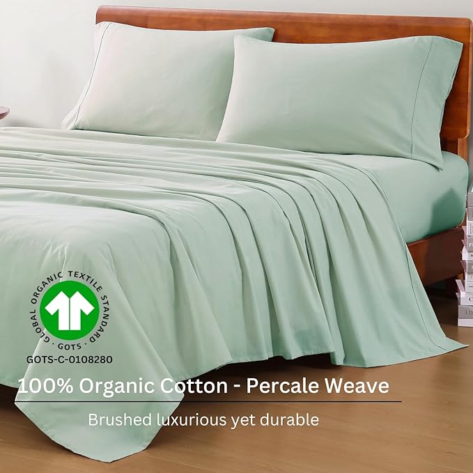LANE LINEN 100% Organic Cotton Cool Blue Full Sheets Set 4-Piece Pure Long Staple Percale Weave Bedding for Bed Breathable Fits Mattress Upto 15" Deep