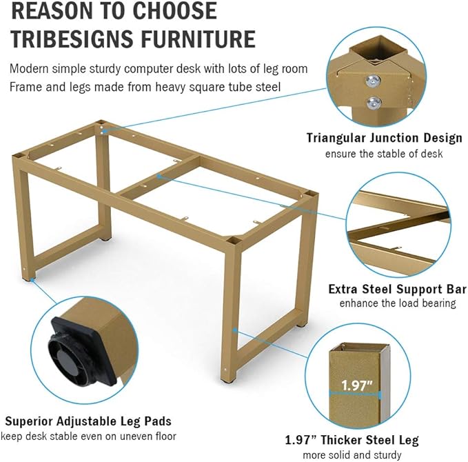 About This [MODERN WHITE GOLD DESK COMPUTER TABLE OFFICE DESKS ]- with metal legs and adjustable leg pads, made the...