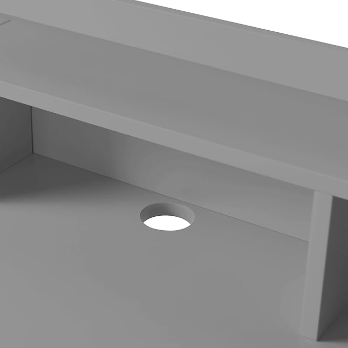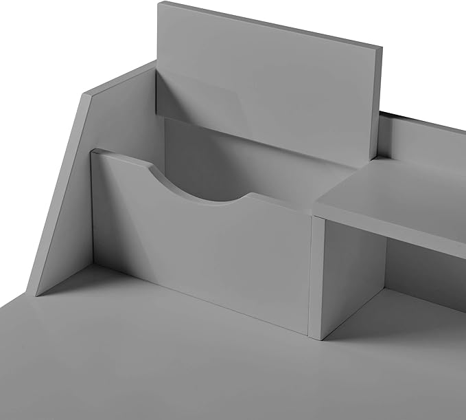 Teamson Home Creativo Writing Study Computer Desk with Solid Wood Legs, Storage Drawers and Open Shelves Hutch for Home Office Living Room Reading Bedroom, 37 inch Height, Gray