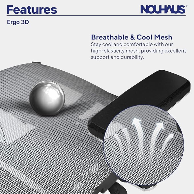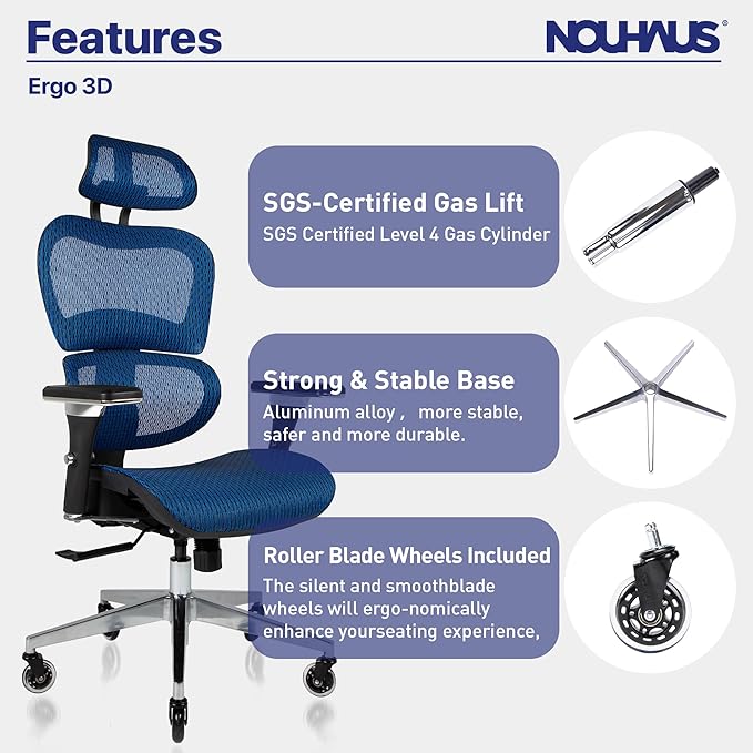 Nouhaus Ergo3D Ergonomic Office Chair Lumbar Support Mesh Office Chair with 4D Adjustable Armrest, Adjustable Headrest and Wheels, Mesh High Back Home Office Desk Chairs(Blue)
