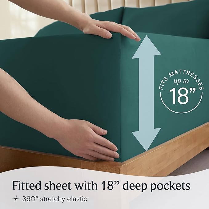 LuxClub 6 PC King Sheet Set, Breathable Luxury Bed Sheets, Deep Pockets 18" Wrinkle Free Cooling Bed Sheets Machine Washable Hotel Bedding Silky Soft - Emerald King