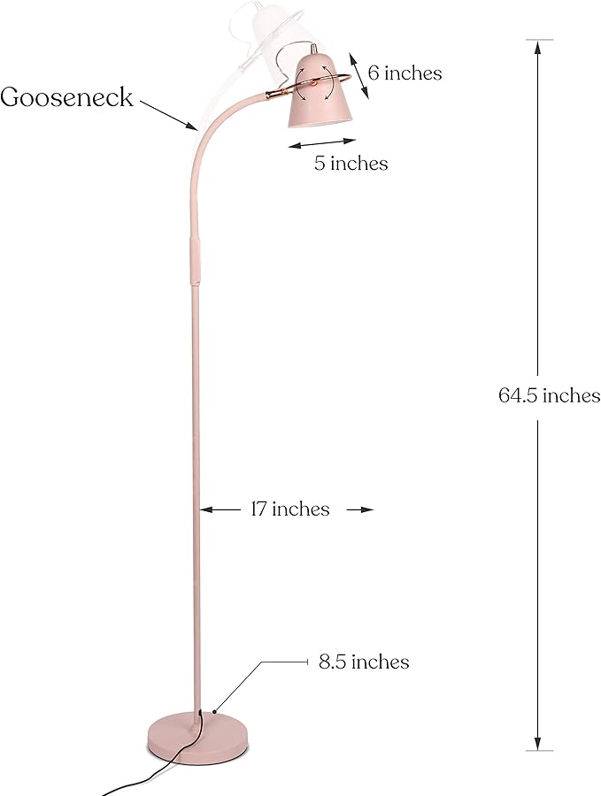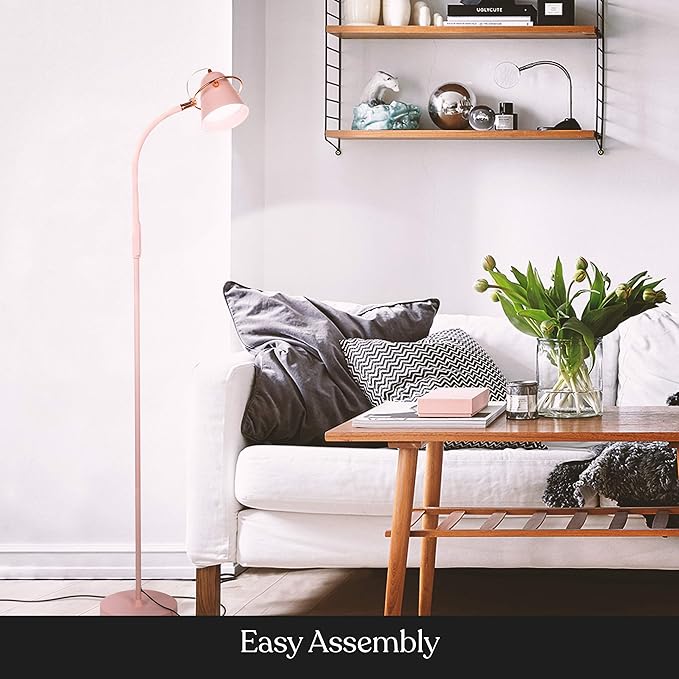 Brightech Zoey LED Floor Lamp - Flexible, Bright Standing Task Light for Puzzles, Crafting, Sewing and Reading - Perfect Dimmable Lighting for Kids Bedrooms, Desks, Nurseries, & Offices - Pastel Pink