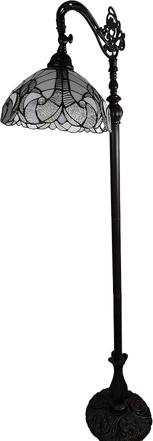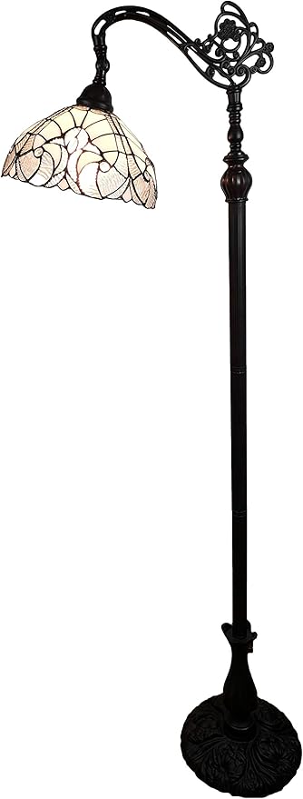 Amora Tiffany Style Floor Lamp Arched 62" Tall Stained Glass White Mahogany Antique Vintage Light Decor Bedroom Living Room Reading Gift AM262FL11B Lighting