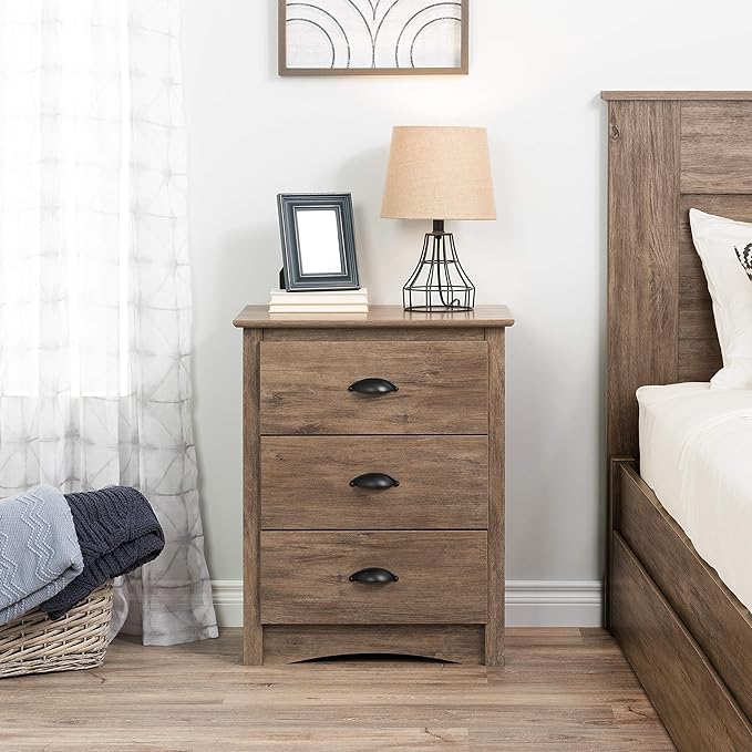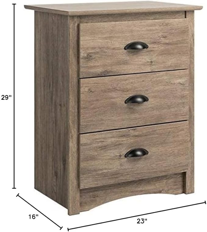 Prepac Salt Spring Rustic Tall Nightstand Side Table with 3 Drawers, Farmhouse Tall 3-Drawer Bedside Table 16" D x 23" W x 29" H, Drifted Gray, DDC-2403