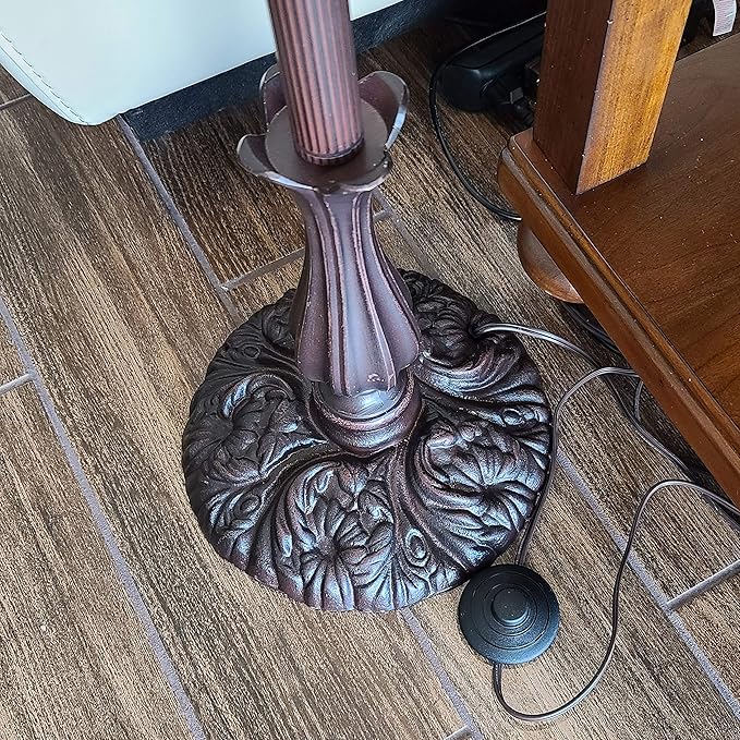 Amora Tiffany Style Floor Lamp Jeweled Jagged Edge Arched 62" Tall Stained Glass White Tan Antique Vintage Light Decor Bedroom Living Room Reading Gift AM122FL12B Lighting