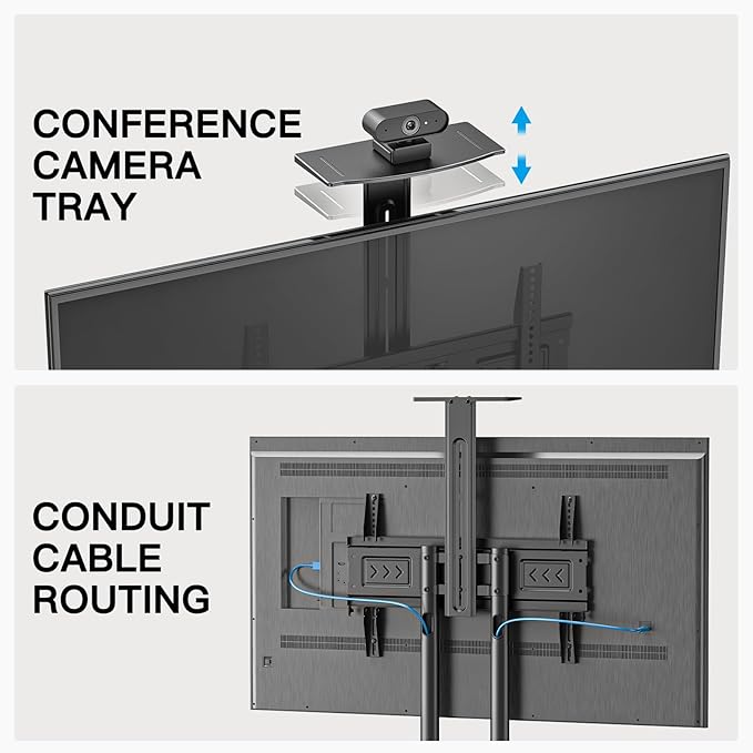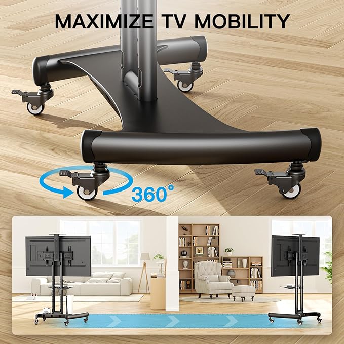 About This UNIVERSAL TV CART: Mobile TV cart is compatible with most 32”-82” TVs and holds up to 100 lbs....