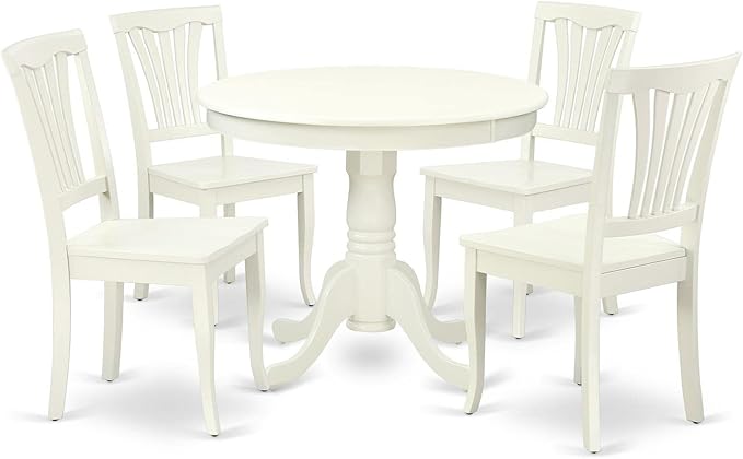 East West Furniture ANAV5-LWH-W 5 Piece Room Set Includes a Round Kitchen Table with Pedestal and 4 Dining Chairs, 36x36 Inch