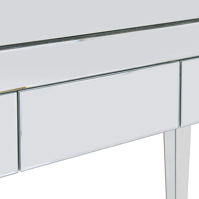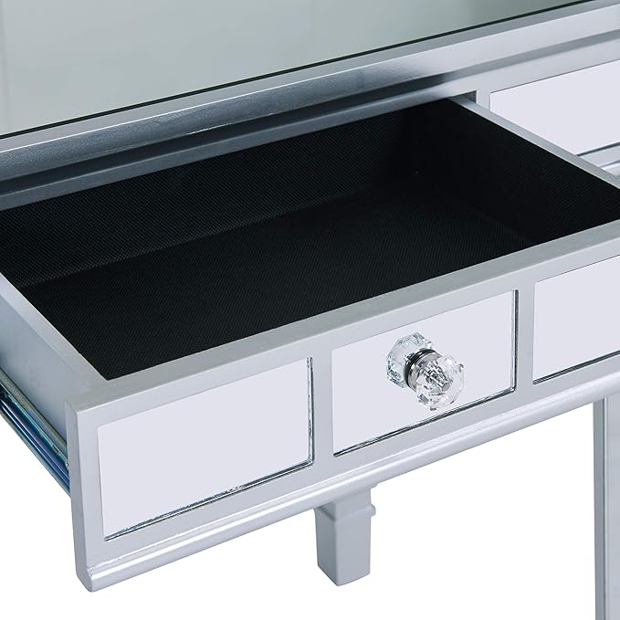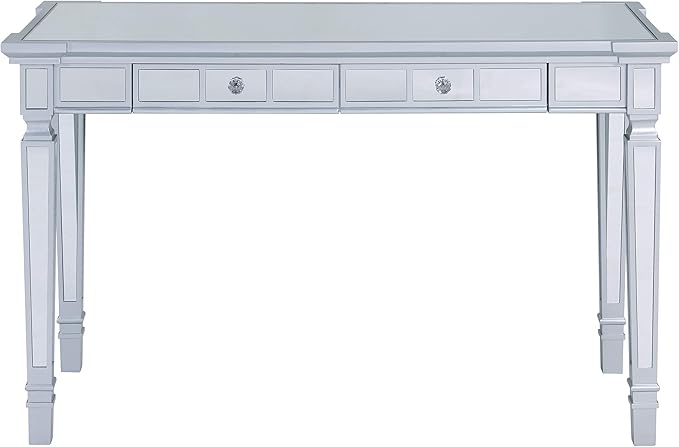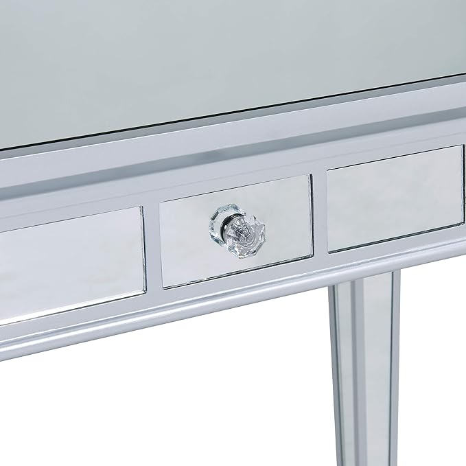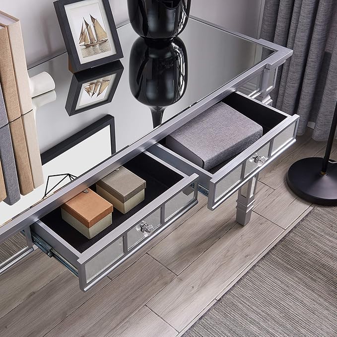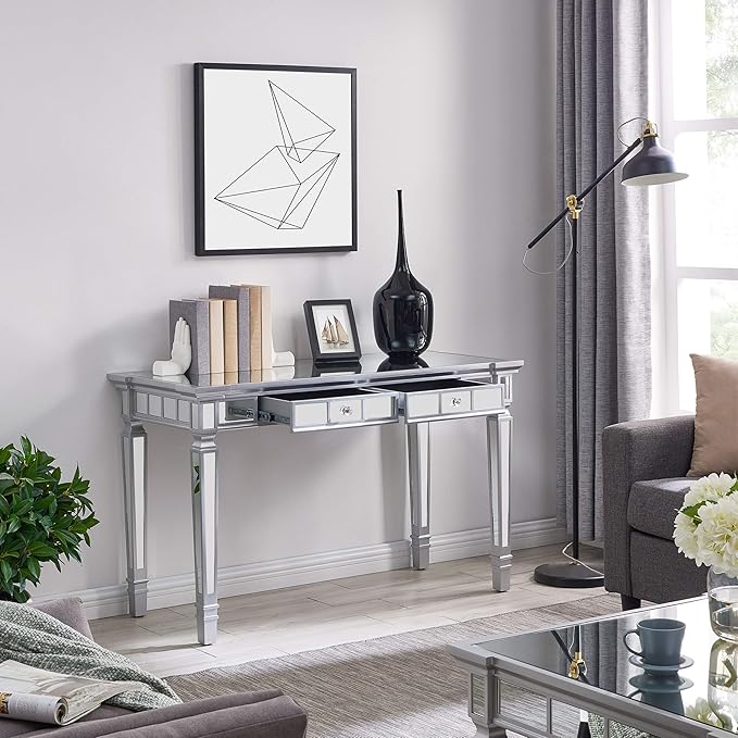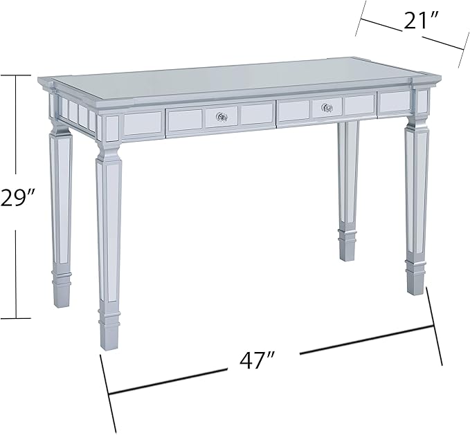 About This Elegant, mirrored writing desk features 2 fabric-lined drawers w/ faux crystal knobs Living room, home office, or open...