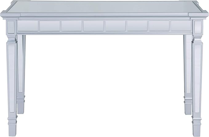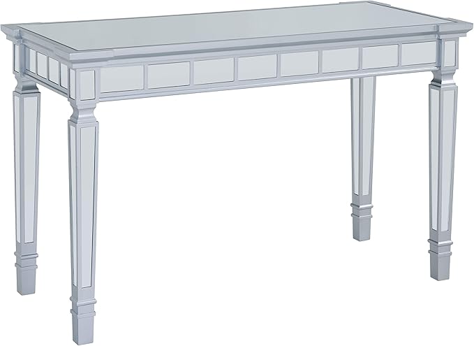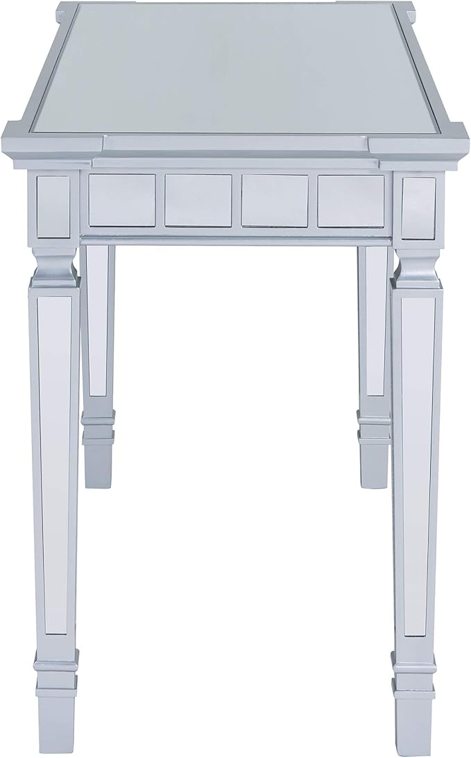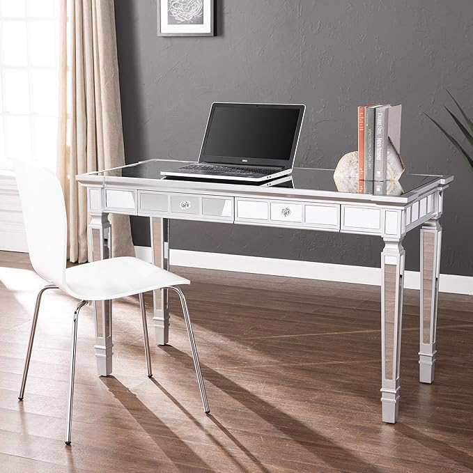 SEI Furniture Glenview Glam Mirrored Writing Desk w/ Drawers, Matte Silver