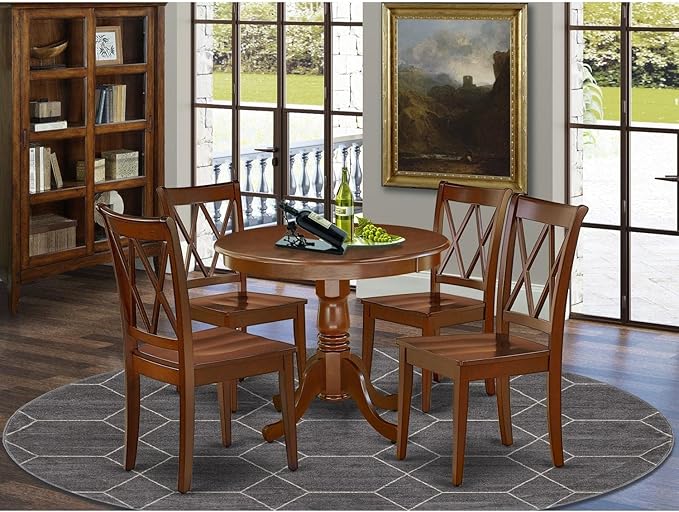 East West Furniture ANCL5-MAH-W 5 Piece Set for 4 Includes a Round Table with Pedestal and 4 Kitchen Dining Chairs, 36x36 Inch
