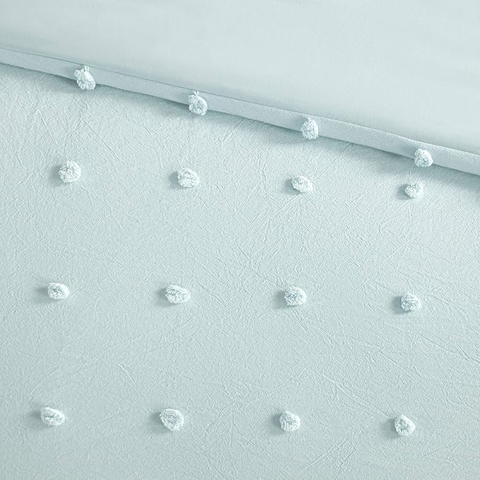 Callie Cotton Jacquard Weave Colorful Pom Pom Kids Comforter sets, Down Alternative Shabby Chic All Season Girls Bedding, Bedroom Decor, Full/Queen,Aqua 5 Piece
