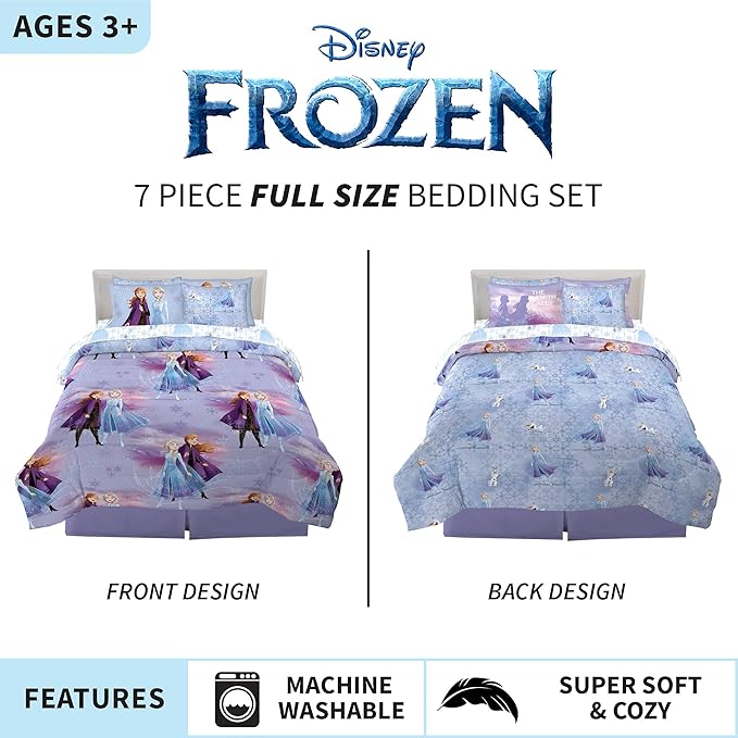 Disney Frozen 2 Kids Bedding Super Soft Comforter and Sheet Set with Sham, 7 Piece Full Size, "Official" Disney Product By Franco