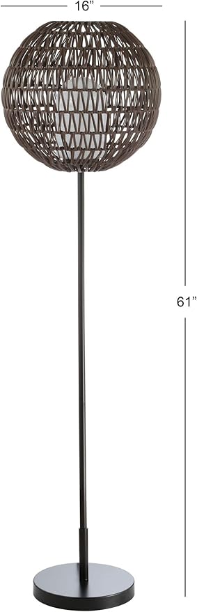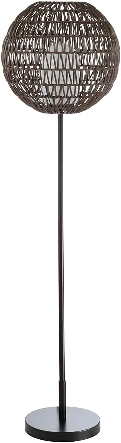 JONATHAN Y JYL6507A Bea 61" Outdoor Woven Globe LED Floor Lamp, Bohemian, Transitional, Scandinavian, Modern, Contemporary, Modern, Office, Bedroom, Living Room, Family Room, Dining Room, Coffee/Black