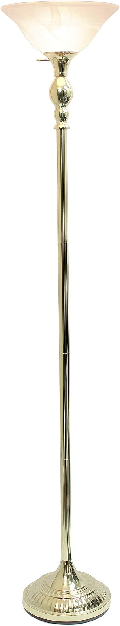 Elegant Designs LF2001-GLD 1 Light Torchiere Marbleized White Glass Shade Floor Lamp, Gold