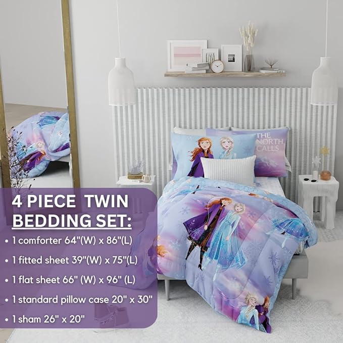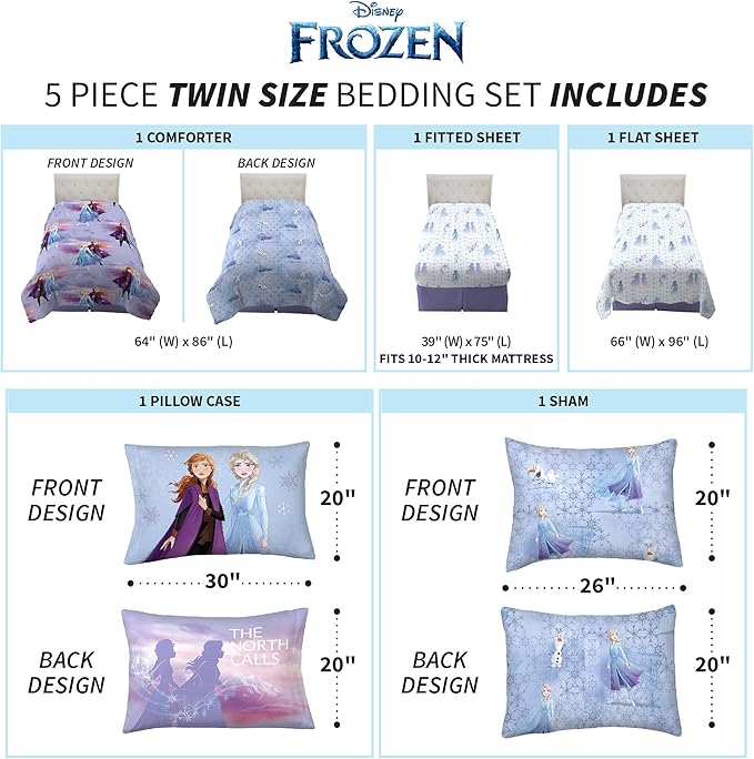 Disney Frozen 2 Kids Bedding Super Soft Comforter and Sheet Set with Sham, 5 Piece Twin Size, "Official" Disney Product By Franco