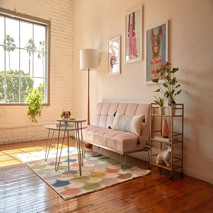 Globe Electric Novogratz x 67225 65" Floor Lamp, 2-Tone Wood Toned Base, White Fabric Shade, Socket Rotary Switch, Living Room Décor, Reading Light, Home Essentials, Bedroom, Office Accessories