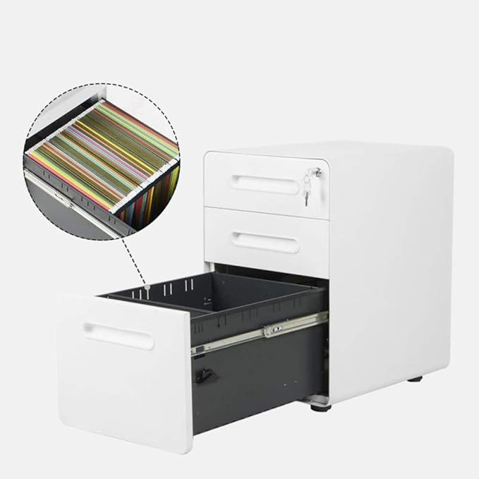ApexDesk 3-Drawer Vertical Metal Mobile File Cabinet with Locking Keys - Light Gray Front Panel/White Body
