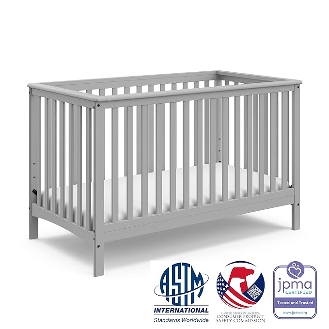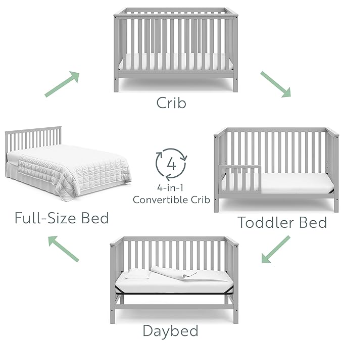 Storkcraft Hillcrest 4-in-1 Convertible Crib (Pebble Gray) - Converts to Daybed, Toddler Bed, and Full-Size Bed, Fits Standard Full-Size Crib Mattress, Adjustable Mattress Support Base