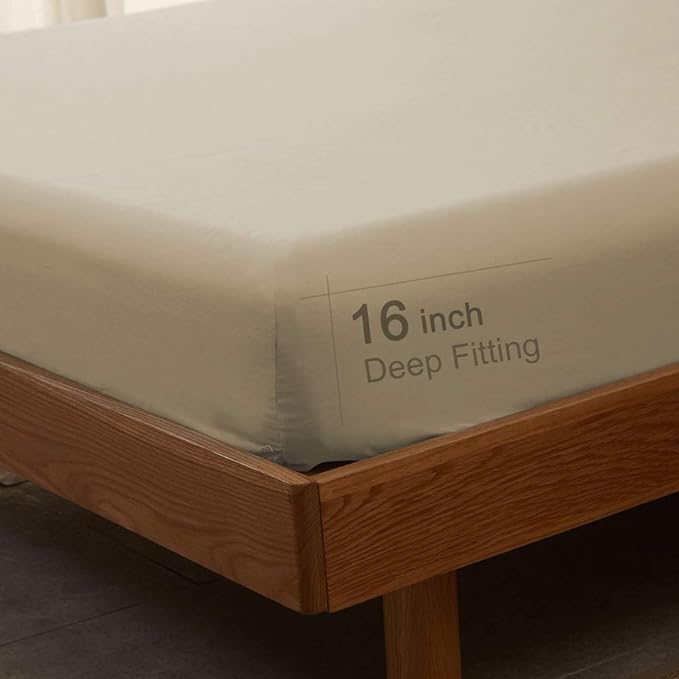 SONORO KATE Bed Sheet Set Super Soft Microfiber 1800 Thread Count Luxury Egyptian Sheets 16-Inch Deep Pocket๏ผWrinkle -4 Piece (Beige, Full)