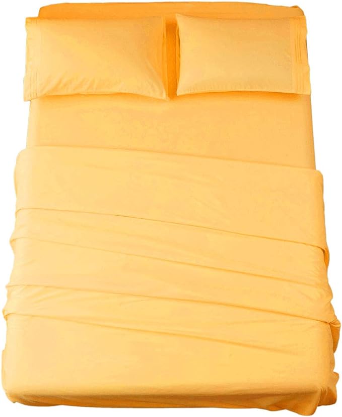 SONORO KATE Bed Sheet Set Super Soft Microfiber 1800 Thread Count Luxury Egyptian Sheets 16-Inch Deep Pocket,Wrinkle-4 Piece (Yellow, Queen)