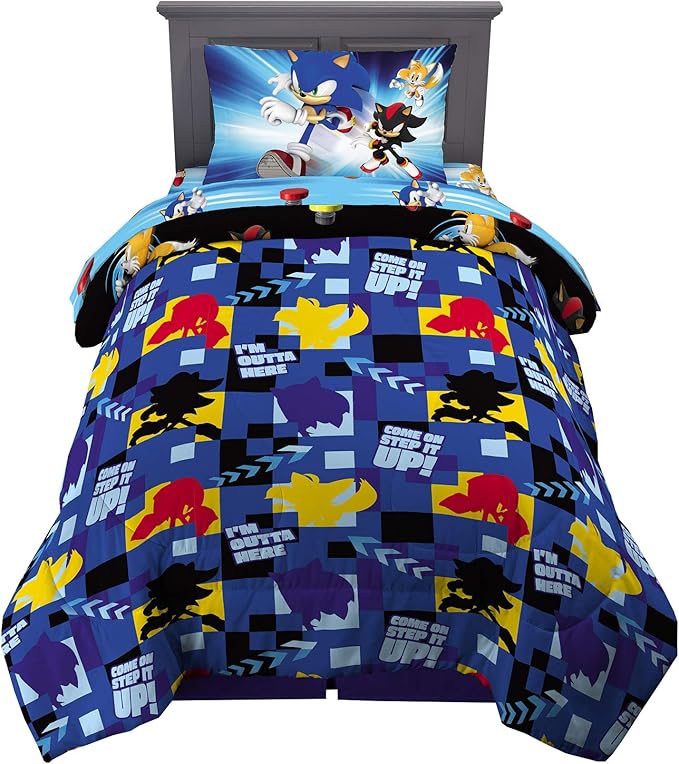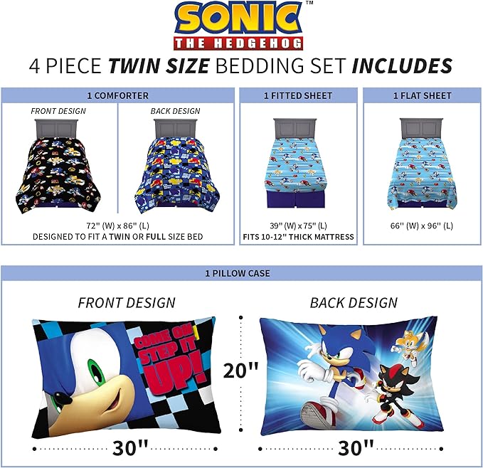 Sonic the Hedgehog Anime Kids Super Soft Comforter and Sheet Set, 4 Piece Twin Size by Franco, Prints may vary