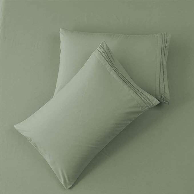 SONORO KATE Bed Sheet Set Super Soft Microfiber 1800 Thread Count Luxury Egyptian Sheets 16-Inch Deep Pocket๏ผWrinkle -4 Piece (Sage, Full)