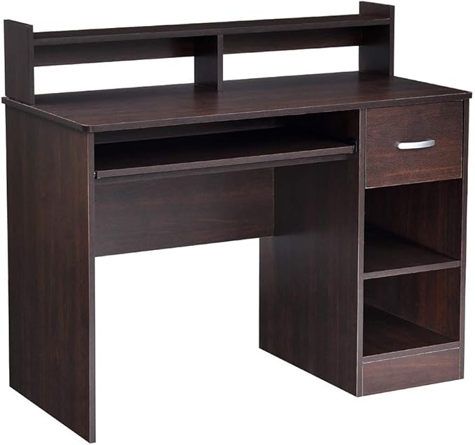 ROCKPOINT Axess Computer Keyboard Tray and Drawer Small Home Office Bedroom, Homework and School Studying Writing Desk for Student with Storage,Chocolate