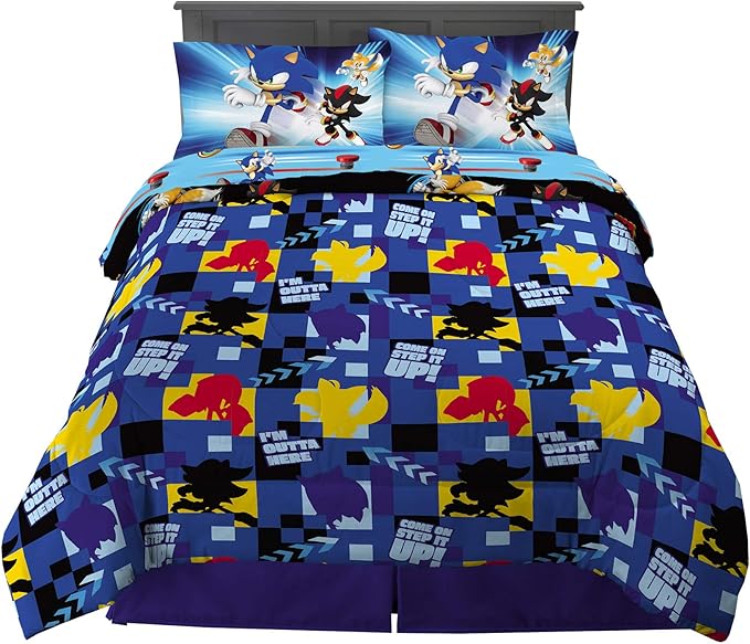 Franco Kids Bedding Super Soft Comforter and Sheet Set, 5 Piece Full Size, Sonic the Hedgehog