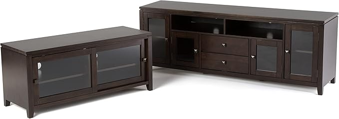 SIMPLIHOME Cosmopolitan SOLID WOOD Universal TV Media Stand, 72 inch Wide, Contemporary, Living Room Entertainment Center with Storage, for Flat Screen TVs up to 80 inches in Mahogany Brown