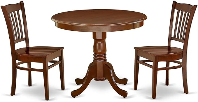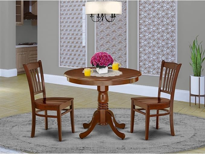 East West Furniture ANGR3-MAH-W 3 Piece Dinette Set for Small Spaces Contains a Round Room Table with Pedestal and 2 Kitchen Dining Chairs, 36x36 Inch